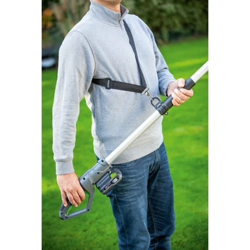 De heggenschaar heeft een zwaardlengte van 510 mm met een maximale snijdikte van 16 mm. De maaikop kan vast worden gezet op zes verschillende hoeken: -60°, -40°, -20°, 0°, 20° en 40°. Voor het gebruikscomfort is de telescopische heggenschaar uitgerust met een softgrip handgreep en een riem.